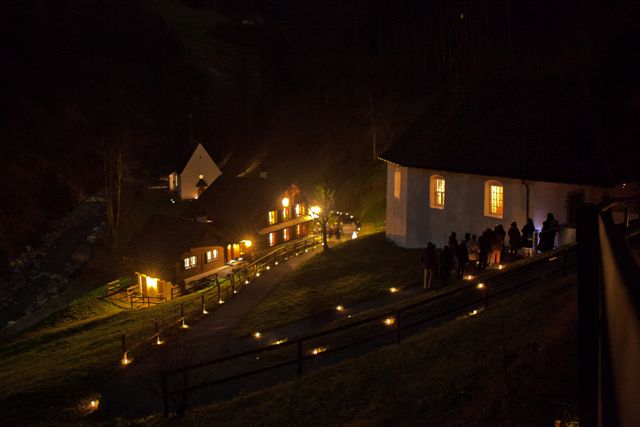 Nach dem Aufstieg nach Flüeli gab es einen Umtrunk, Gelächter und engagierte Gespräche, bevor die franziskanischen Menschen wohlgelaunt wieder nach Hause aufbrachen. Und einige zwinkerten sich dabei zu: „Zum Glück mussten wir dieses Jahr nicht durch den rutschigen Schnee waten. Es kann ja schon glatt sein in den Ranft hinunter“.