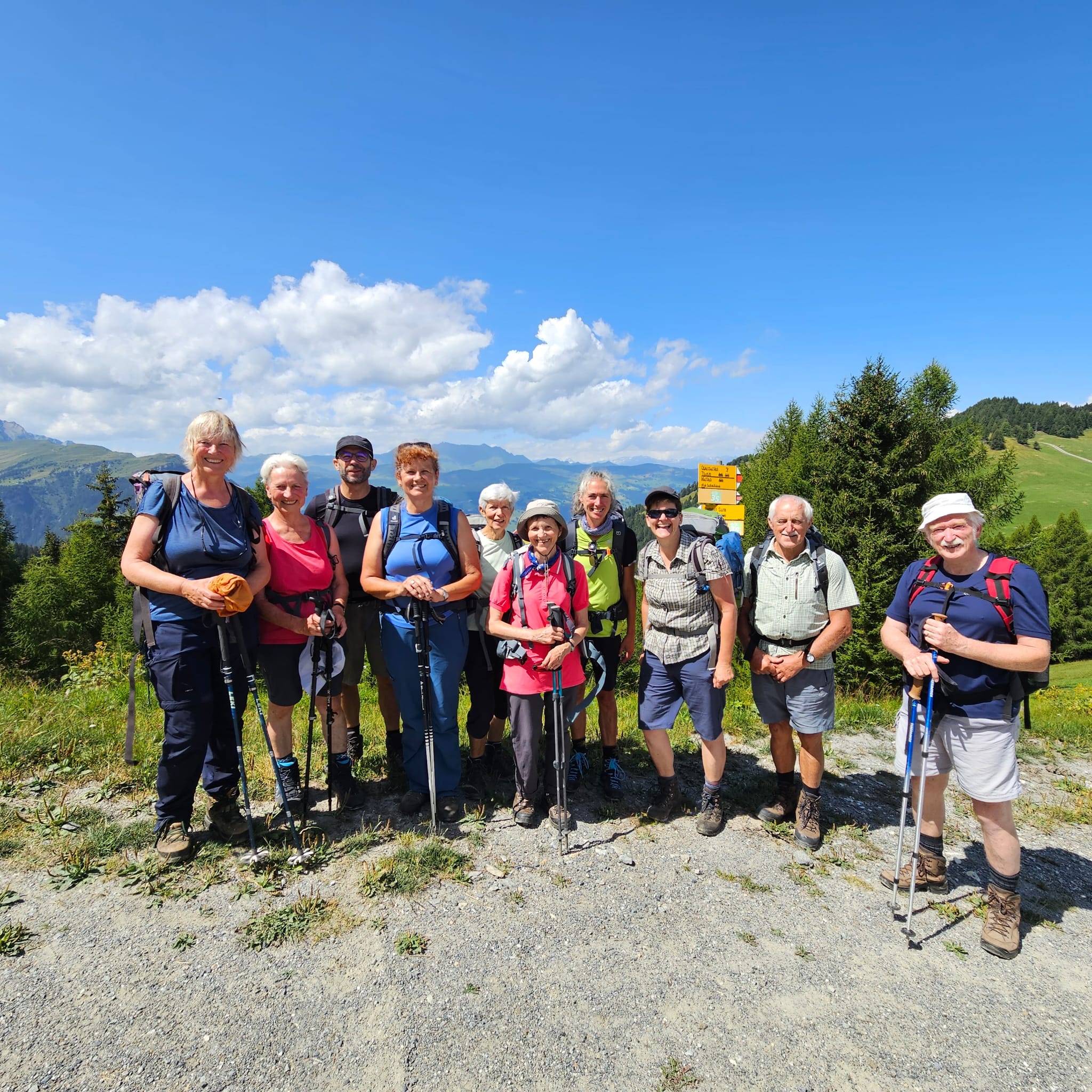 Der letzte Tag begann nach dem Frühstück mit dem Gottesdienst. Tatsächlich soll es Pilger geben, die den Weg auf die 8.00 Uhr Messe nach Ziteil schaffen. Beschenkt von bisherigem idealen Pilgerwetter, begleitete uns zuletzt leichter Regen bis nach Tigignas und Savognin, wo wir die Pilgertage beendeten.