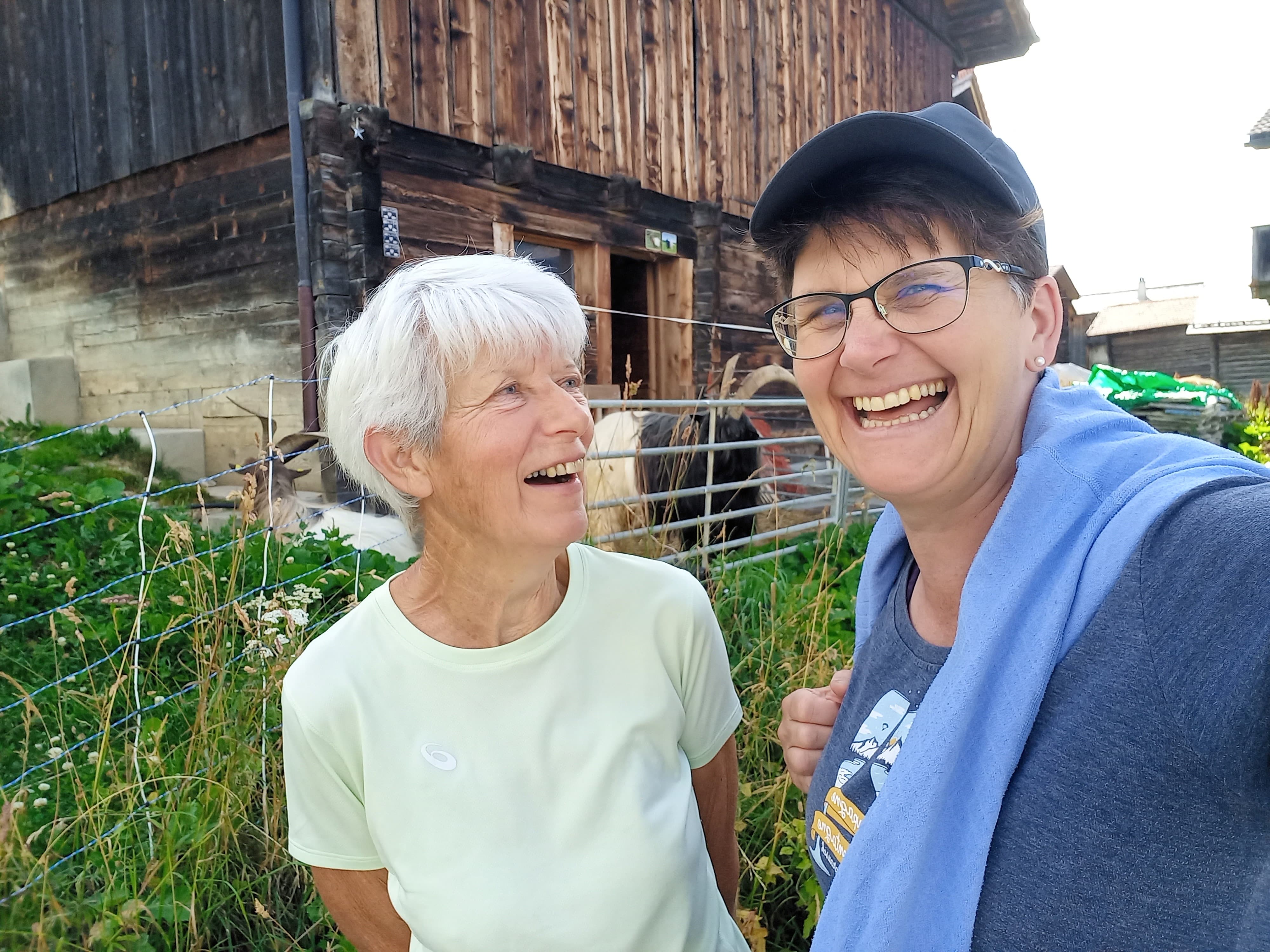 Etliche Höhenmeter erwarteten uns am 2. Pilgertag. Wie in der Ausschreibung als Voraussetzung beschrieben, war die ganze Pilgergruppe gewohnt, Bergwege zu bewandern und entsprechend trainiert. Jede:r trug zudem sein eigenes Gepäck im Rucksack mit. Der Weg führte stetig und konsequent aufwärts, so dass wir rasch an Höhe gewannen. Wir wurden belohnt mit einer tollen Aussicht in die kleinen Walserdörfer und die Berge des hinteren Rheintals. Auf 1864 M.ü.M. erreichten wir Obermutten. Das kleine Bergdorf ist bekannt für die einzige Kirche in der Schweiz, die vollständig nur aus Holz gebaut ist. Auf dem Bergvorsprung, hoch über Thusis gelegen, wird der Talwechsel ins Val Surses sichtbar, wo der Pilgerweg weitergehen wird. Wir erkennen im Impuls, dass bereits Jesus und Franziskus sich mit eigenen Grenzerfahrungen auseinandersetzen mussten. Bisher bekannte persönliche Grenzen können Sicherheit geben. Eigene Grenzen neu zu überlegen braucht Mut und kann eine neue Freiheit und neues Vertrauen bedeuten. Diese Entscheidung liegt bei jedem ganz persönlich.